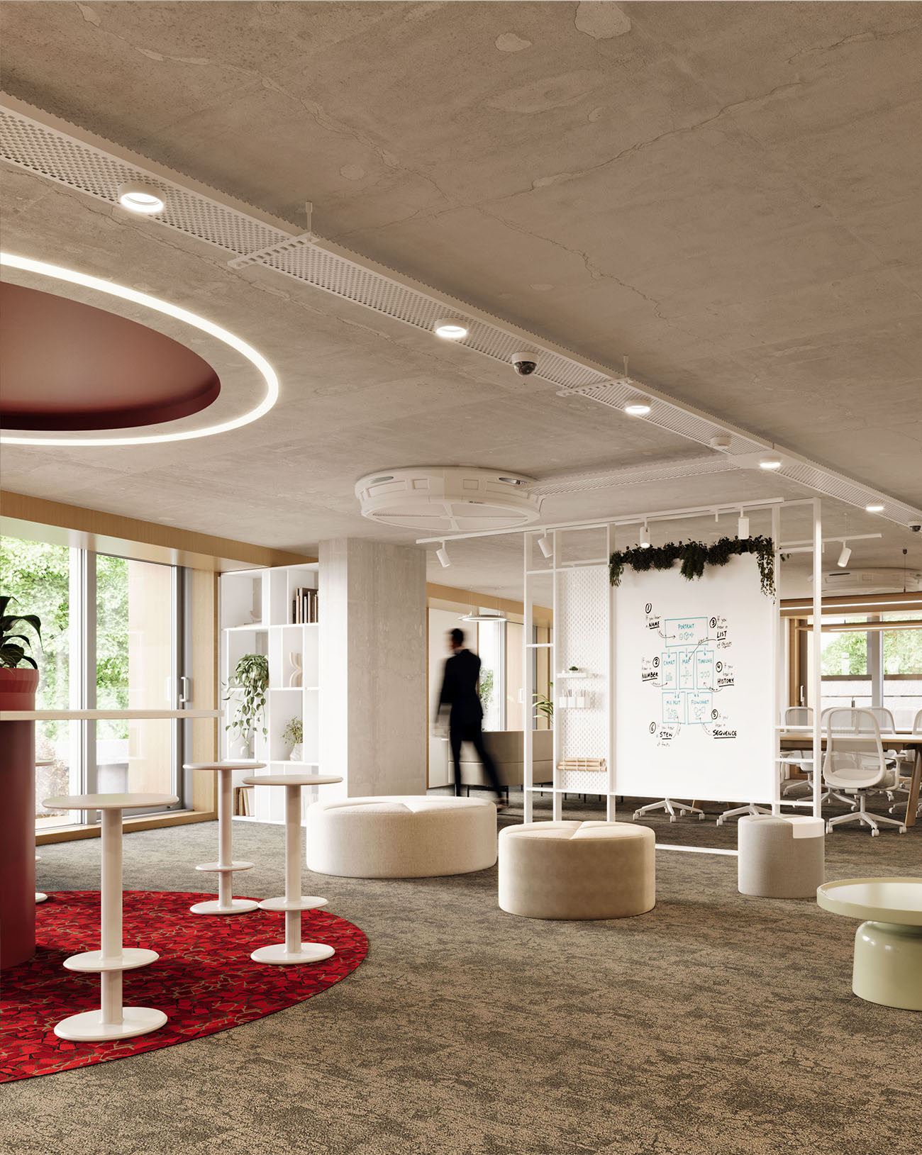 Proje, gün ışığını tüm çalışma ortamlarına aktararak yeşili ve insanları bir araya getiren modern bir çalışma ortamı yaratmaya odaklanıyor.